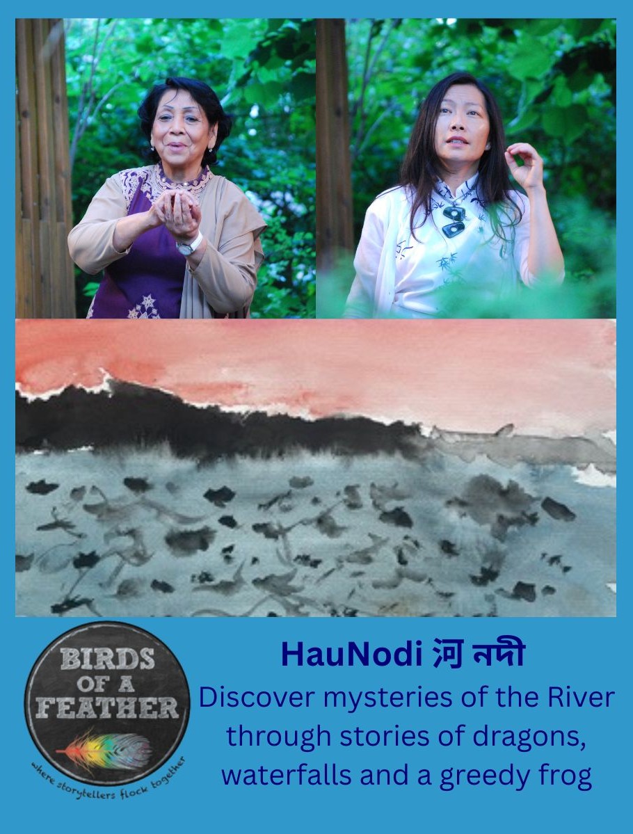HauNodi 河 and নদী (pronounced haw-no-thi), combine the Cantonese and Bengali word for River, a powerful metaphor that inspires two different generations to celebrate their friendship and love of storytelling. Rubena Sinha and Diana Tso invite audiences on a journey of words, music, and movement with stories inspired by their respective cultures from the birth of the Ganges River to a brave girl’s search for the Dragon Rainmaker. Their performance culminates with audiences learning the sounds, words and gestures of their songs and dancing with the River.